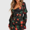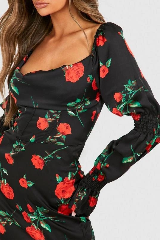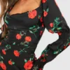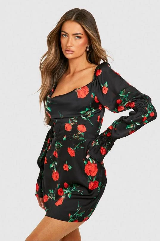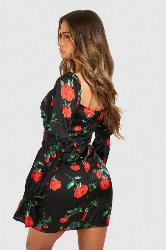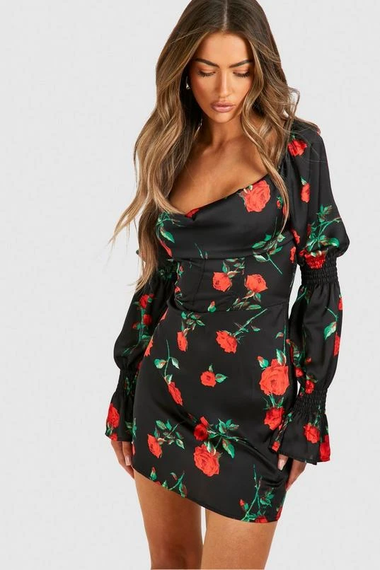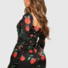 BOOHOO Rose Print Corset Detail Mini Dress