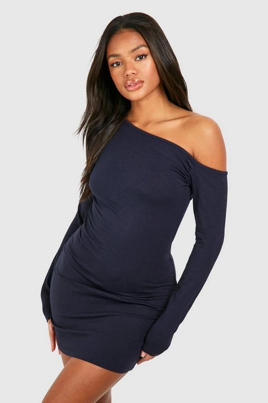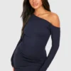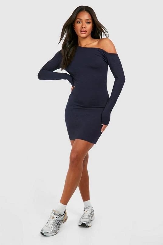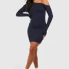 BOOHOO Ruched Bardot Long Sleeve Modal Mini Dress