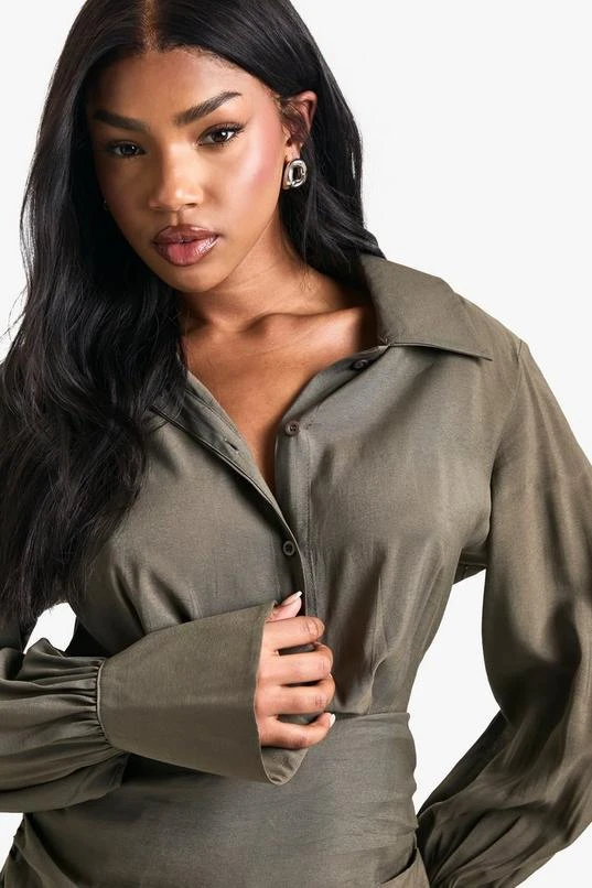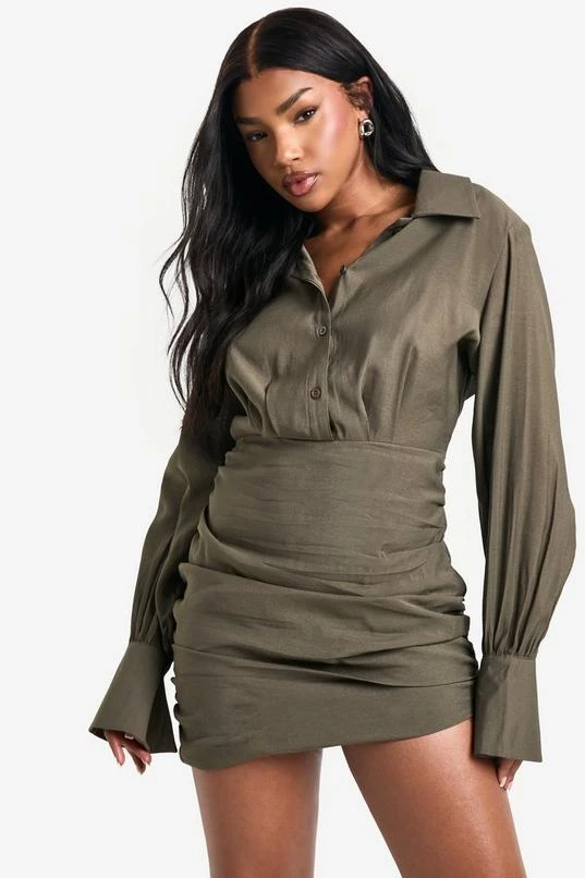 BOOHOO Ruched Detail Shirt Dress