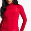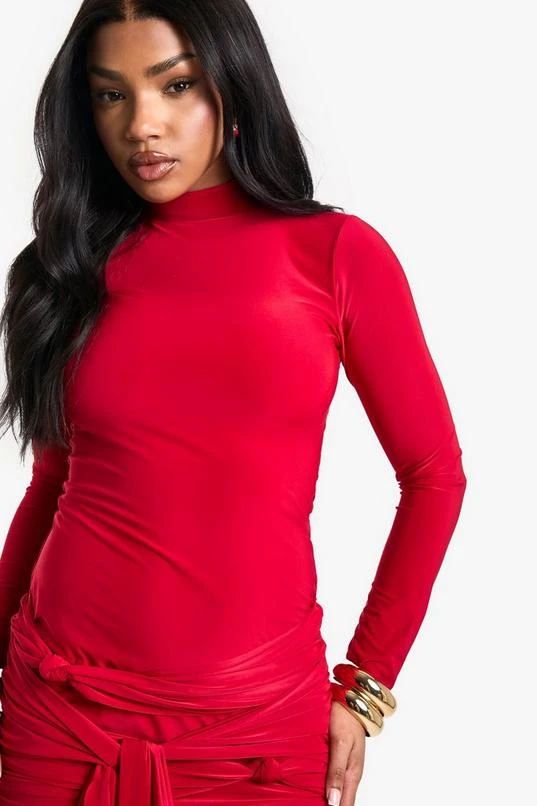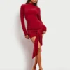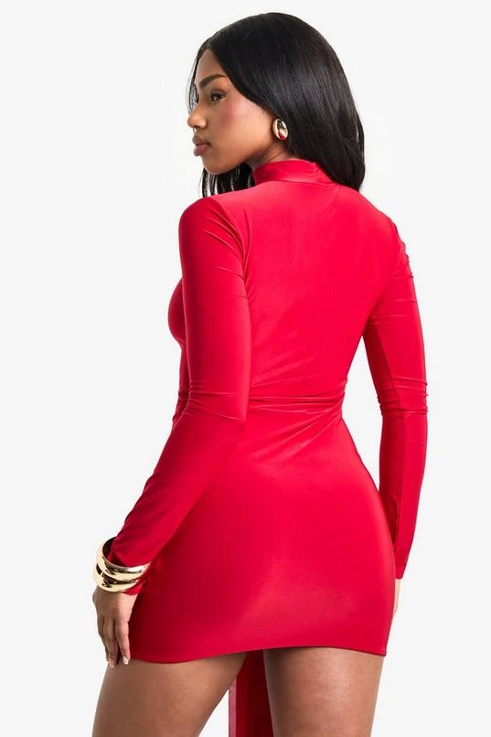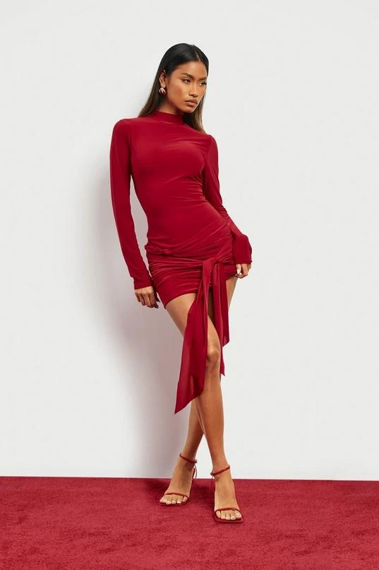 BOOHOO Ruched Front Drape Long Sleeve Mini Dress
