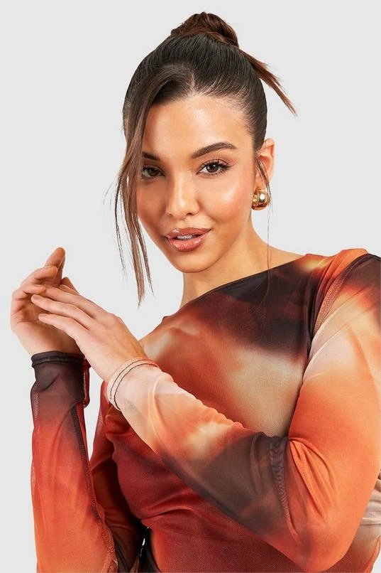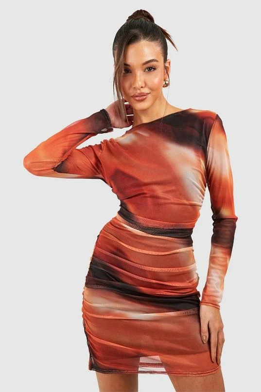 BOOHOO Ruched Mesh Ombre Mini Dress
