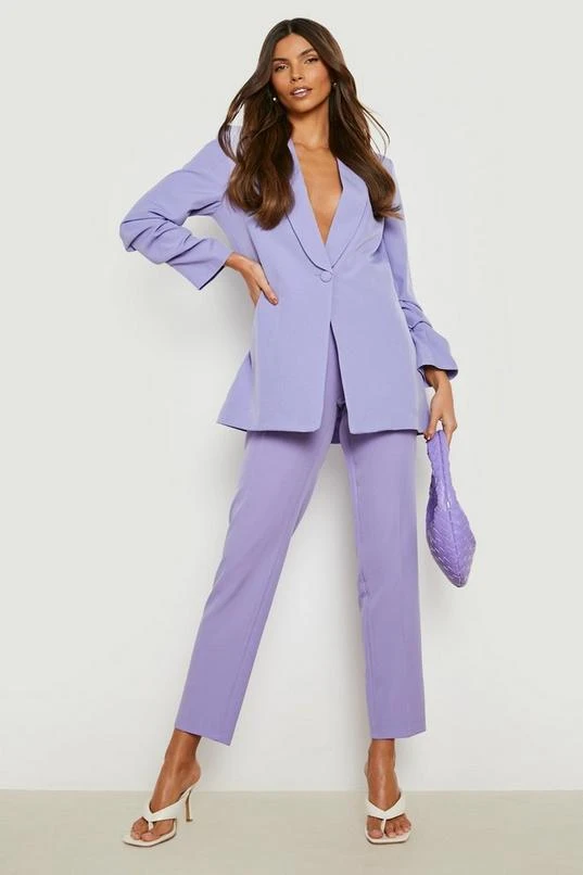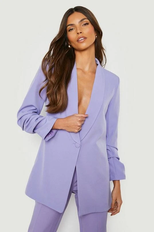 BOOHOO Ruched Sleeve Plunge Lapel Blazer