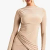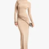 BOOHOO Ruched Slinky Slash Neck Maxi Dress