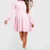 BOOHOO Ruched Waist Skater Sweatshirt Dress