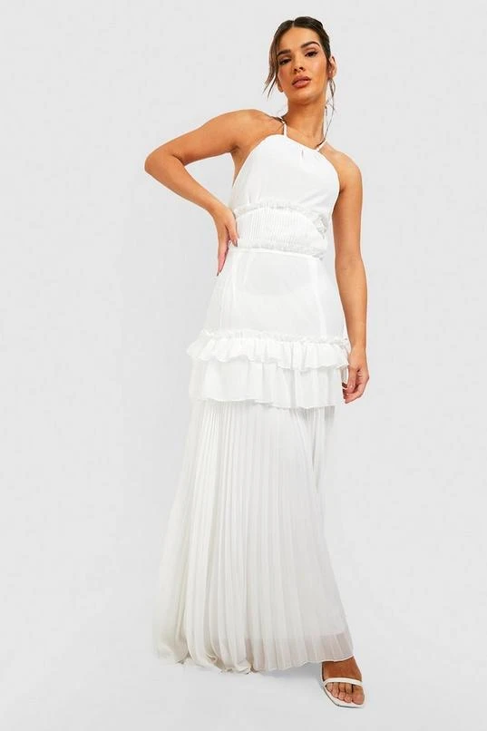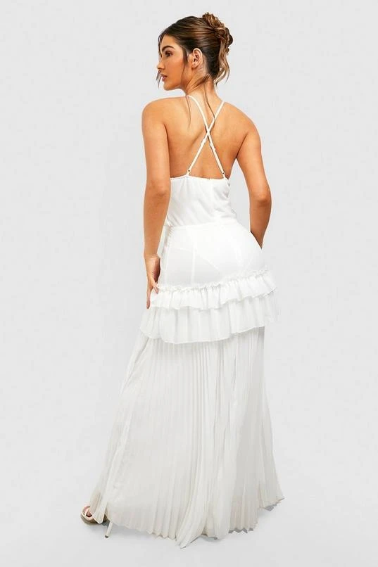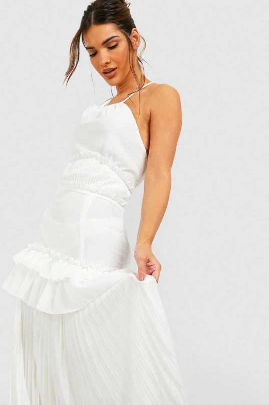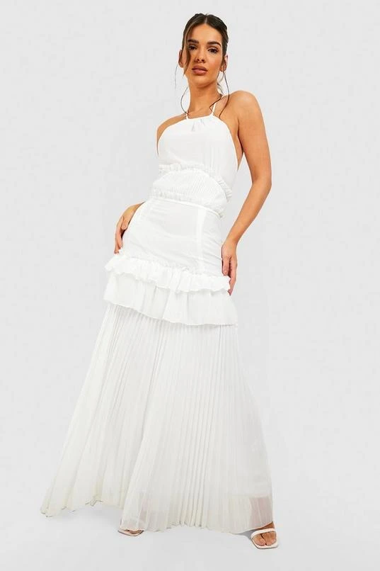 BOOHOO Ruffle Detail Pleated Skirt Maxi Dress
