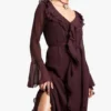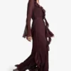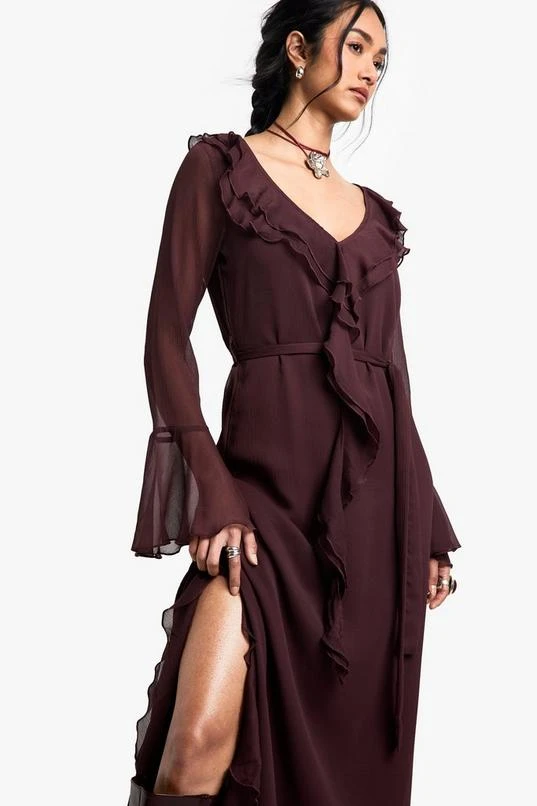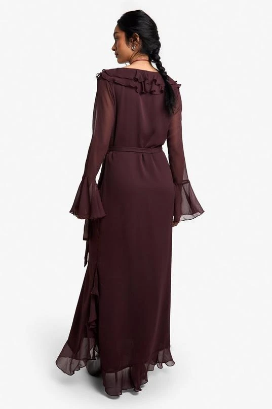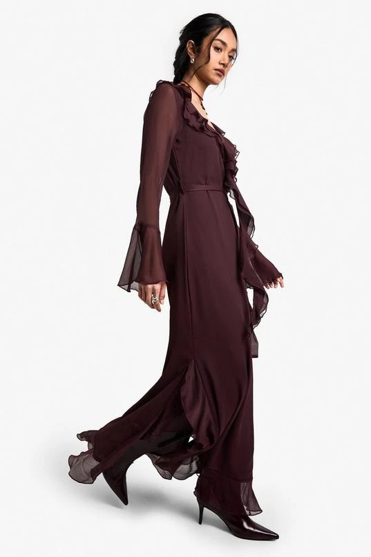 BOOHOO Ruffle Flare Sleeve Belted Chiffon Maxi Dress