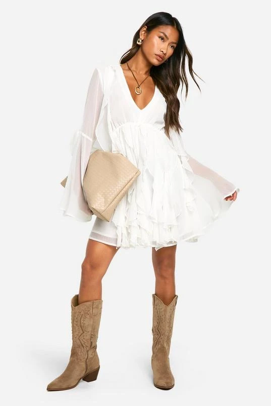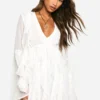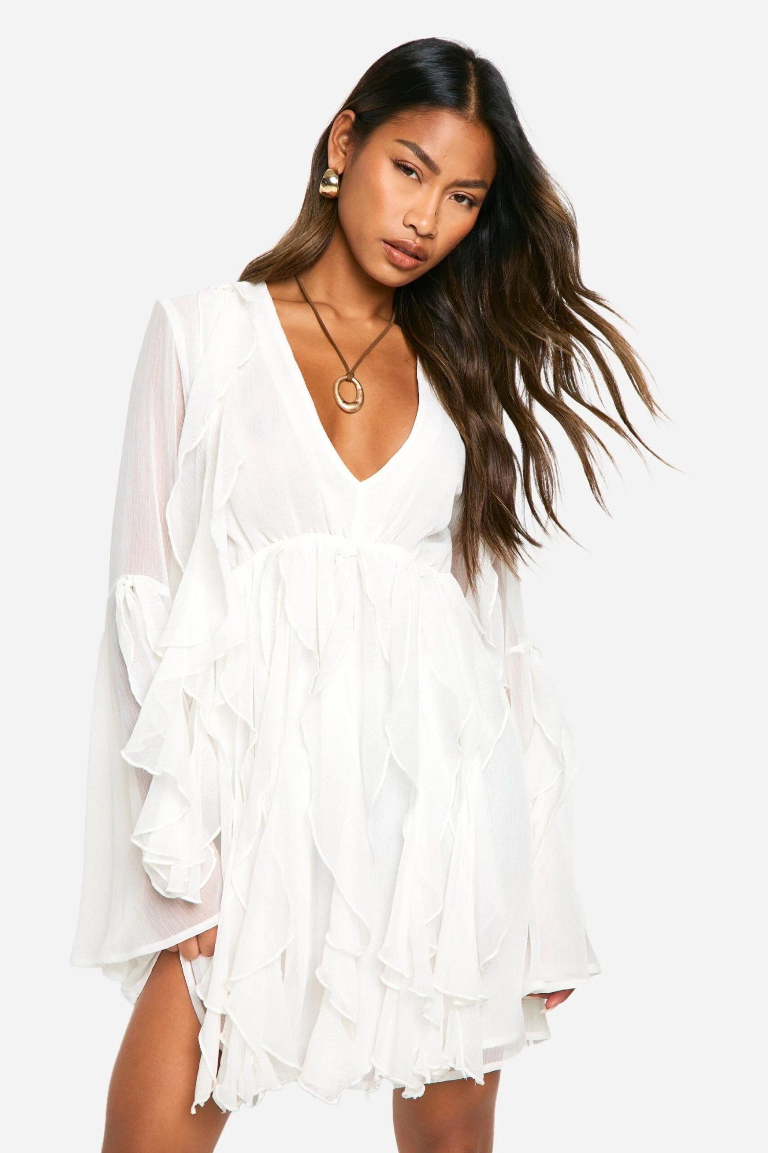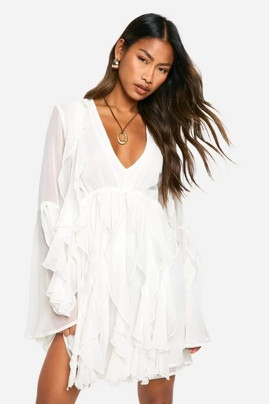 BOOHOO Ruffle Flare Sleeve Mini Dress