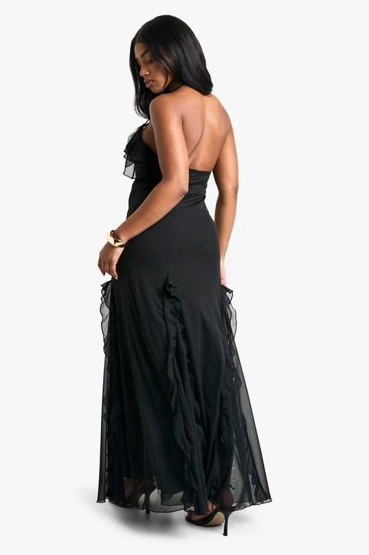 BOOHOO Ruffle Halter Neck Fit And Flare Maxi Dress