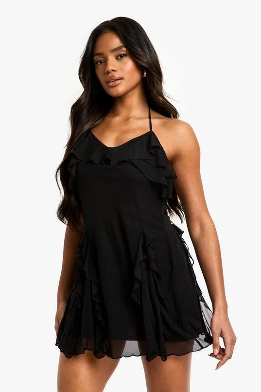 BOOHOO Ruffle Halter Neck Fit And Flare Mini Dress