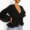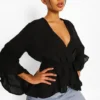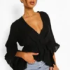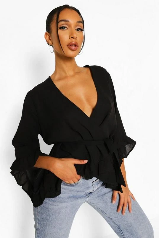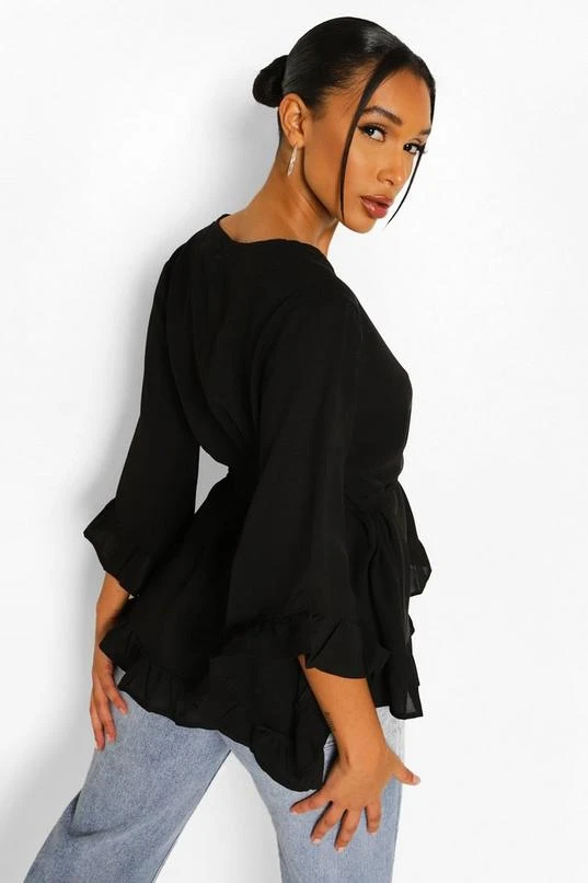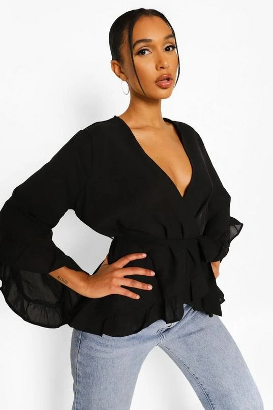 BOOHOO Ruffle Hem Wrap Blouse