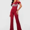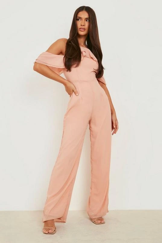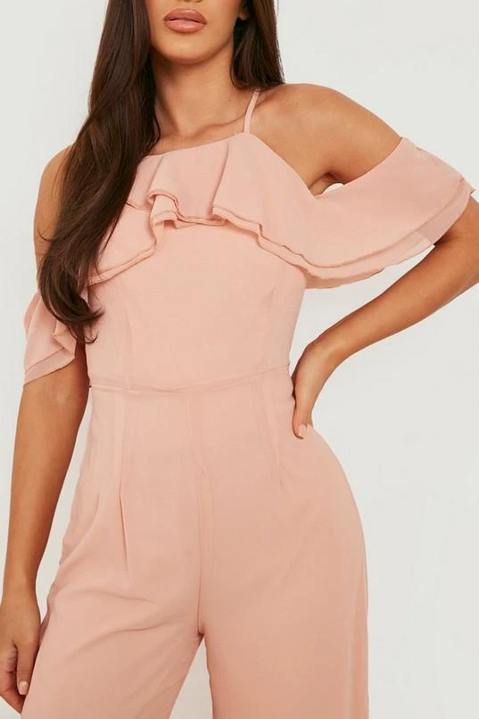 BOOHOO Ruffle Layered Detail Wide Leg Jumpsuit