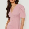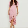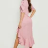 BOOHOO Ruffle Puff Sleeve Hi Low Hem Midi Dress