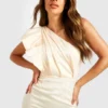 BOOHOO Satin Asymmetric Ruffle Midi Dress
