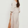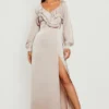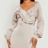 BOOHOO Satin Blouson Sleeve Ruffle Maxi Dress
