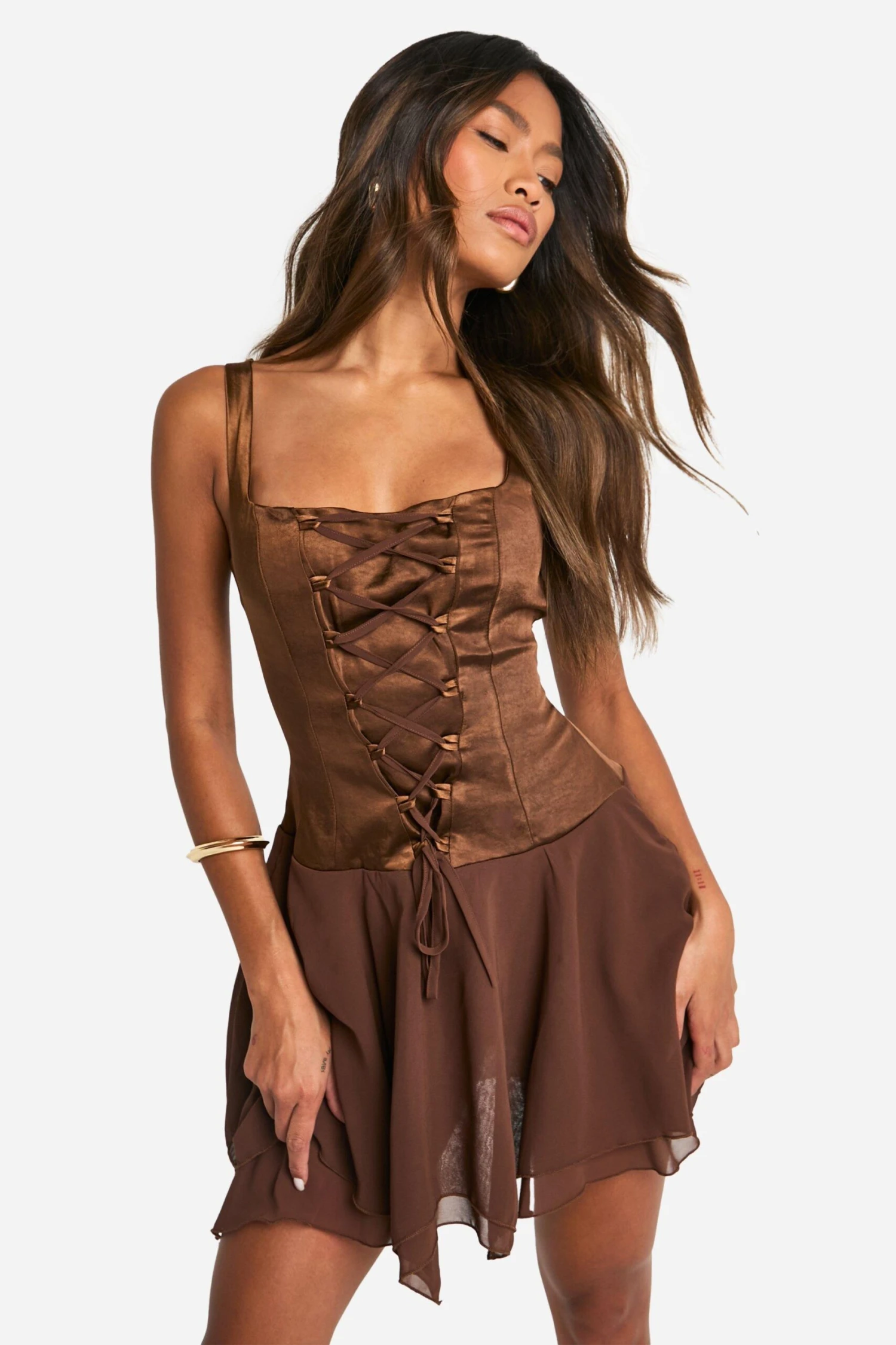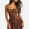 BOOHOO Satin Chiffon Mix Corset Mini Dress