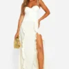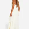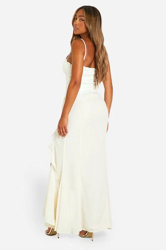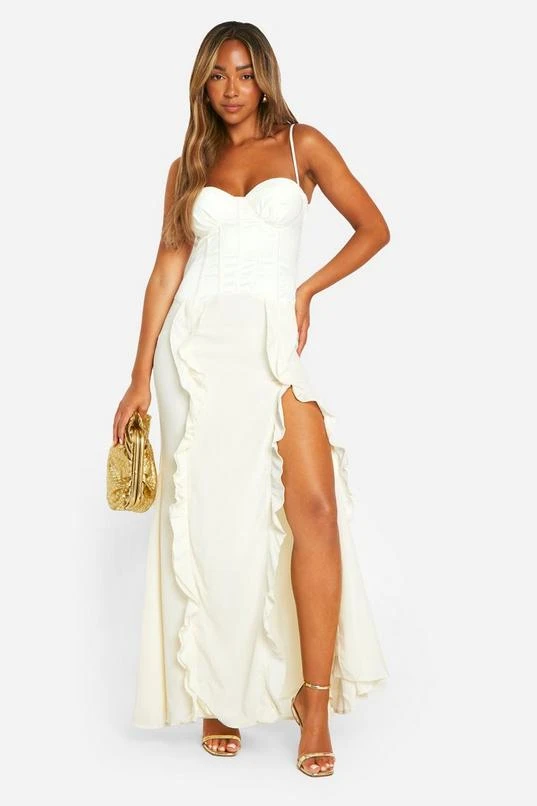 BOOHOO Satin Chiffon Mix Corset Ruffle Maxi Dress