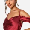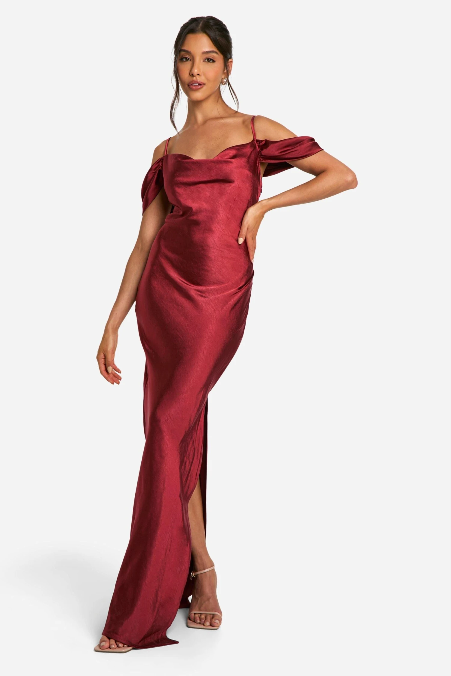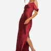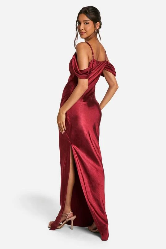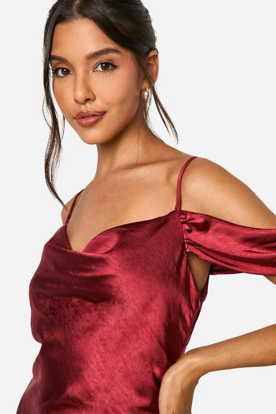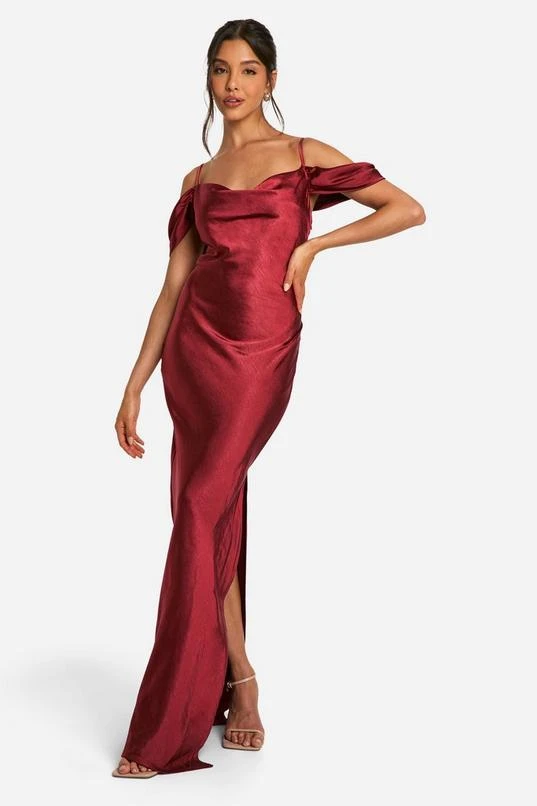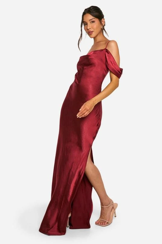 BOOHOO Satin Cold Shoulder Maxi Dress