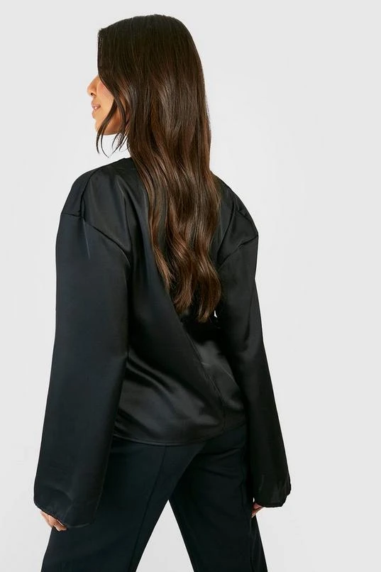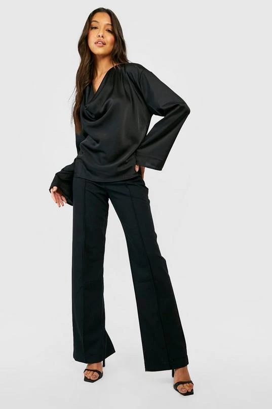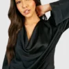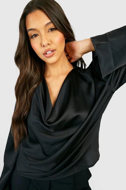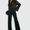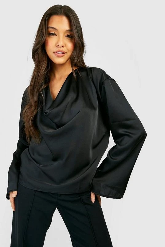 BOOHOO Satin Cowl Neck Flared Sleeve Blouse