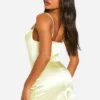 BOOHOO Satin Cowl Neck Lace Insert Trim Mini Dress