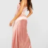 BOOHOO Satin Cowl Neck Split Maxi Dress