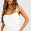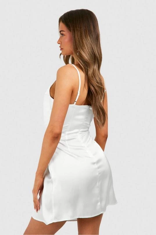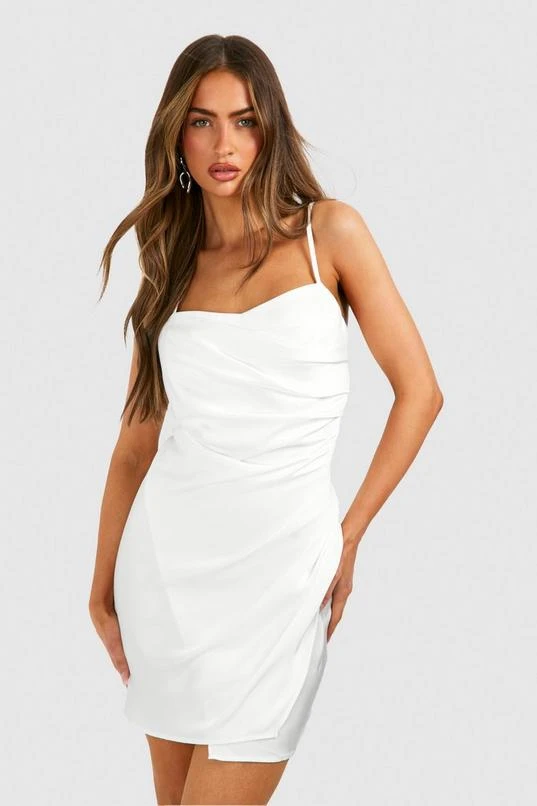 BOOHOO Satin Draped Mini Slip Dress