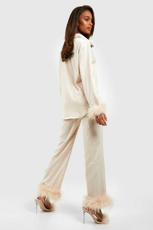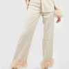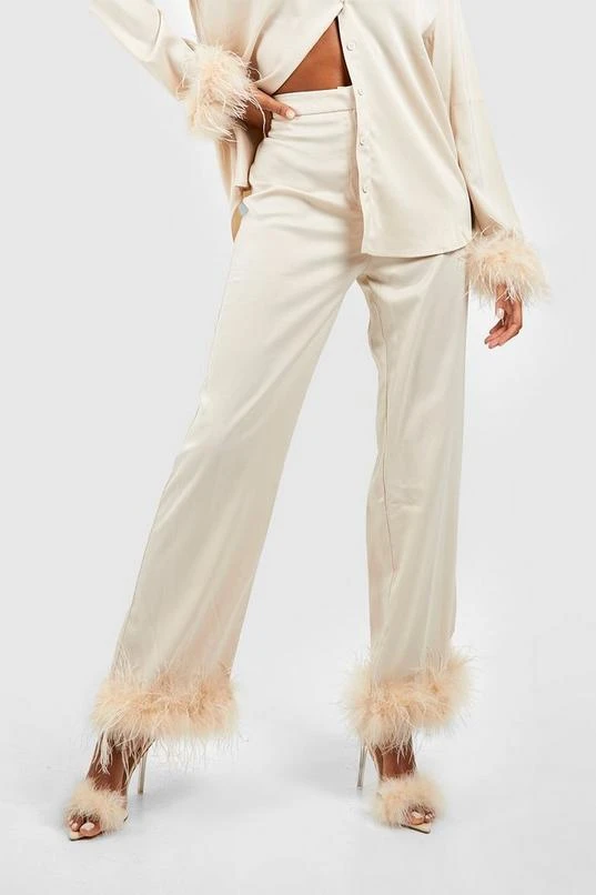 BOOHOO Satin Feather Cuff Dress Pants