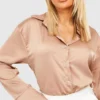 BOOHOO Satin Flared Cuff Fitted Shirt