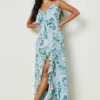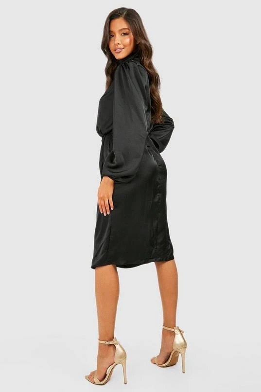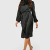 BOOHOO Satin High Neck Draped Wrap Midi Dress