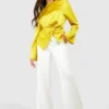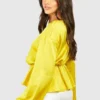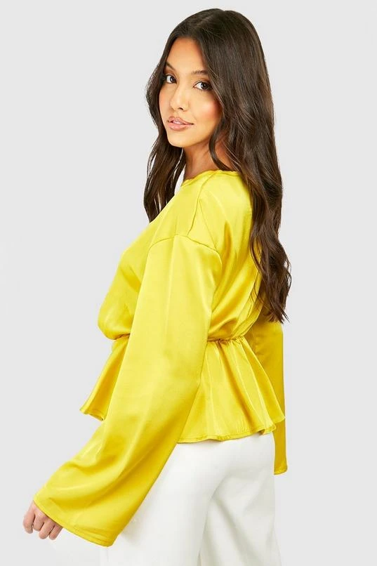 BOOHOO Satin Knot Detail Flared Sleeve Blouse