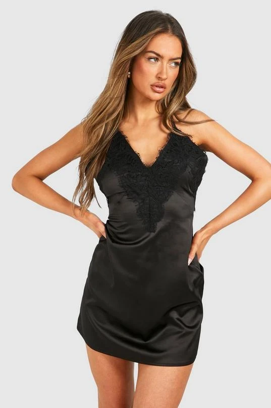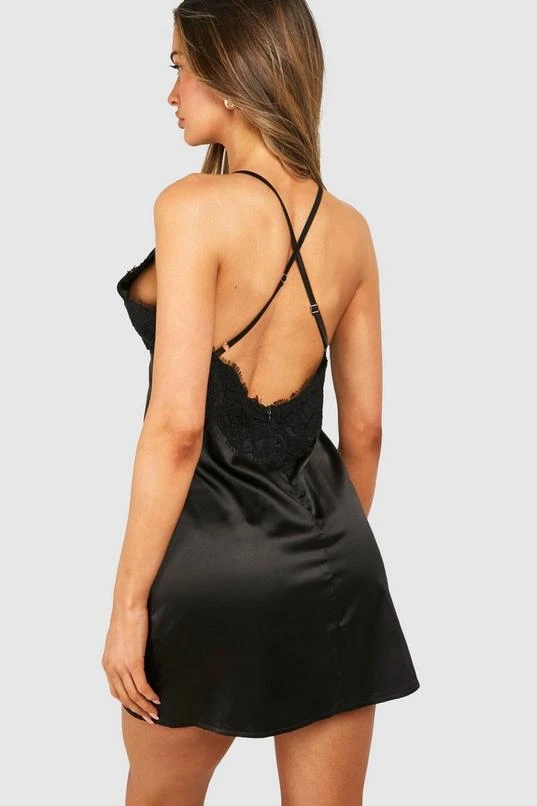 BOOHOO Satin Lace Cami Mini Dress