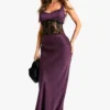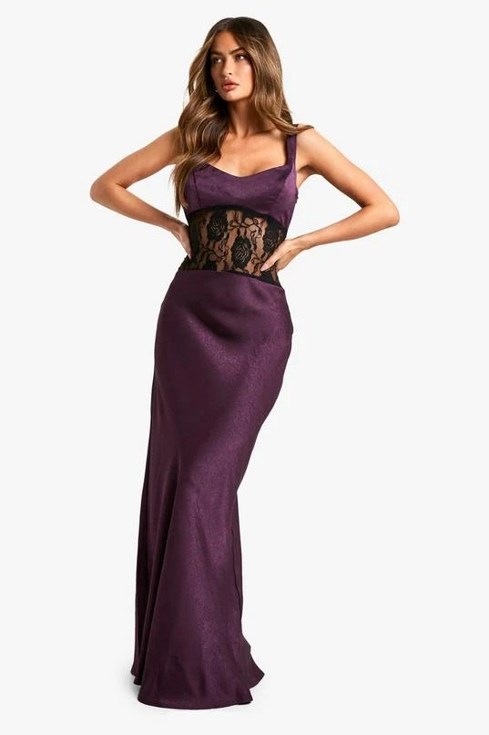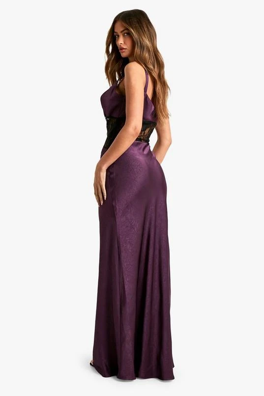BOOHOO Satin Lace Column Maxi Dress
