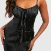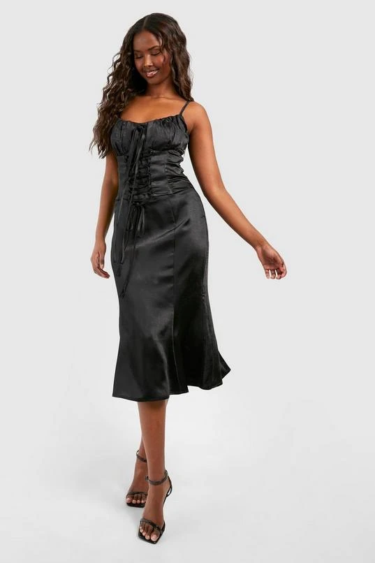 BOOHOO Satin Lace Up Corset Midi Dress