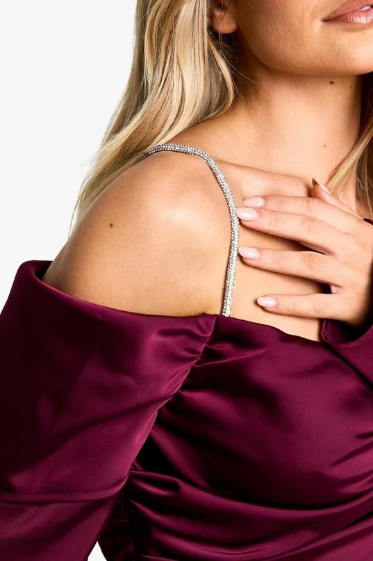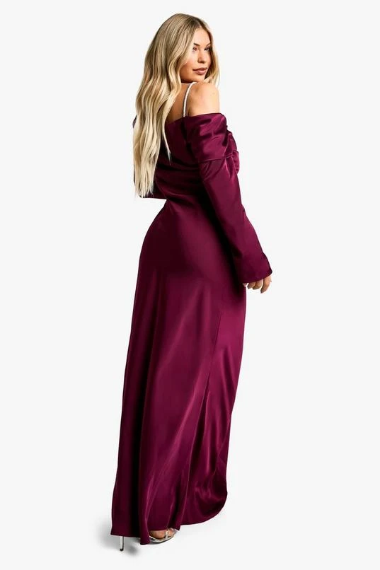 BOOHOO Satin Maxi Asymmetric Dress