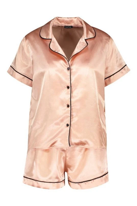 BOOHOO Satin Pj Short Set With Contrast Piping