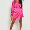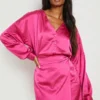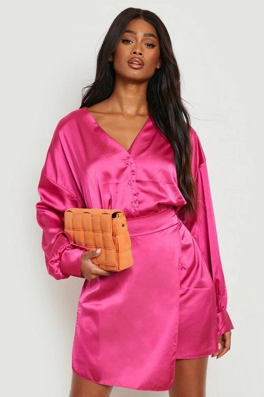 BOOHOO Satin Puff Sleeve Shirt & Wrap Mini Skirt