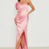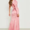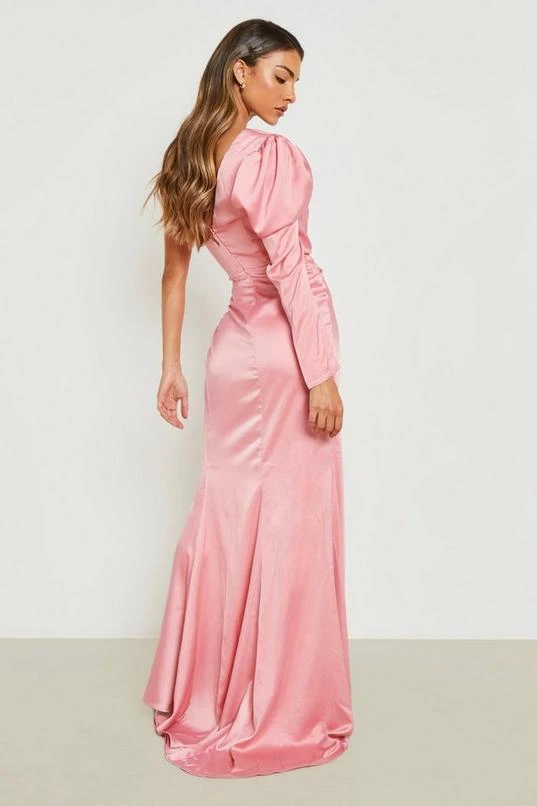 BOOHOO Satin Puff Sleeve Wrap Maxi Dress