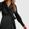 BOOHOO Satin Ruffle Wrap Midi Dress