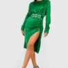BOOHOO Satin Shoulder Pad Rhinestone Buckle Midi Dress