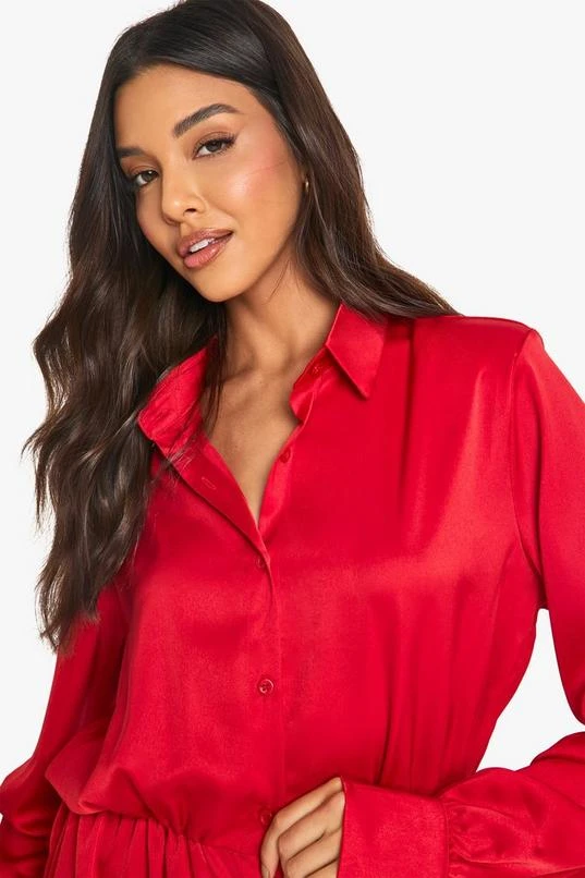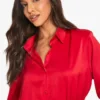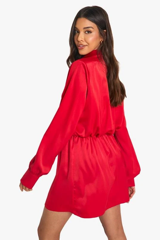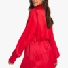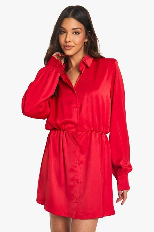 BOOHOO Satin Shoulder Pad Shirt Dress