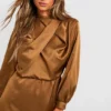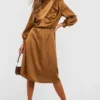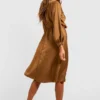 BOOHOO Satin Twist Detail Midi Skater Dress