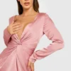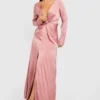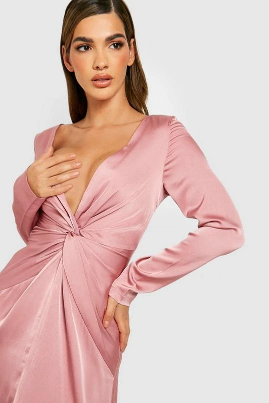 BOOHOO Satin Twist Detail Split Maxi Dress