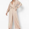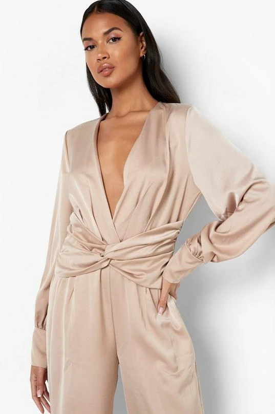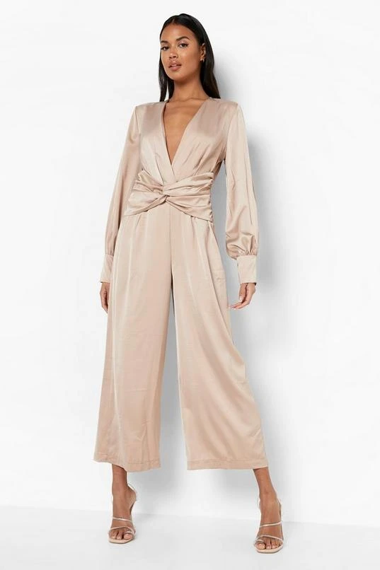 BOOHOO Satin Twist Front Culotte Jumpsuit