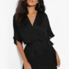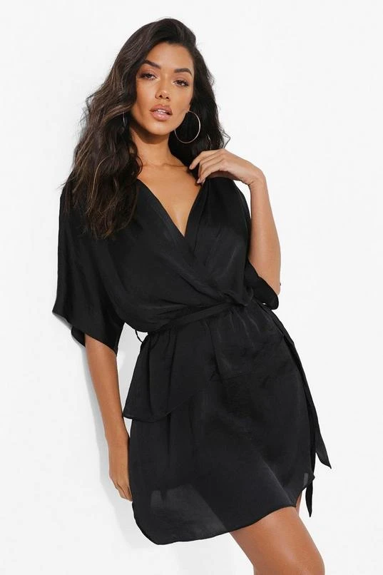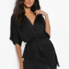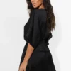 BOOHOO Satin Volume Short Sleeve Belted Skater Dress