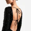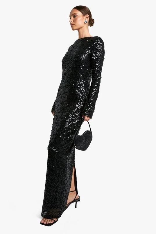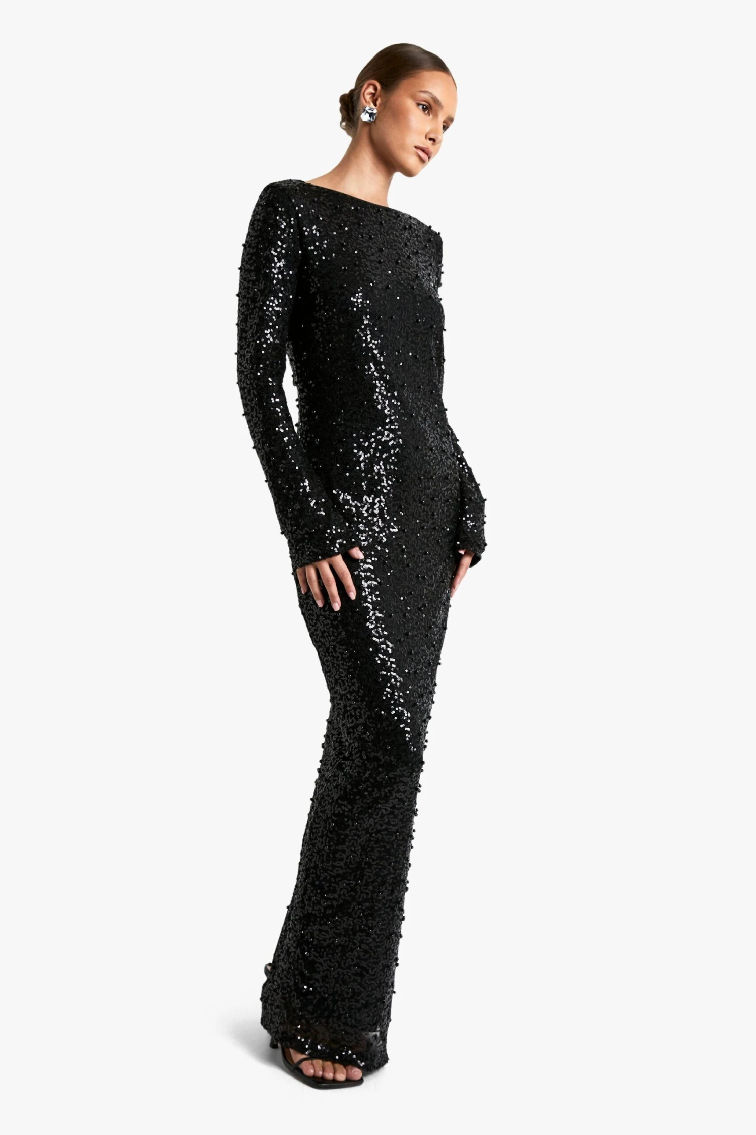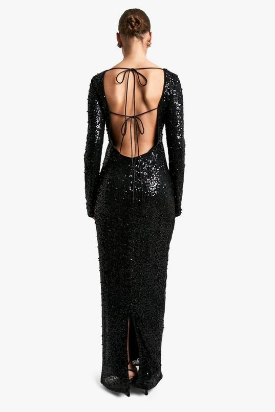BOOHOO Scoop Low Back Pearl Sequin Maxi Dress