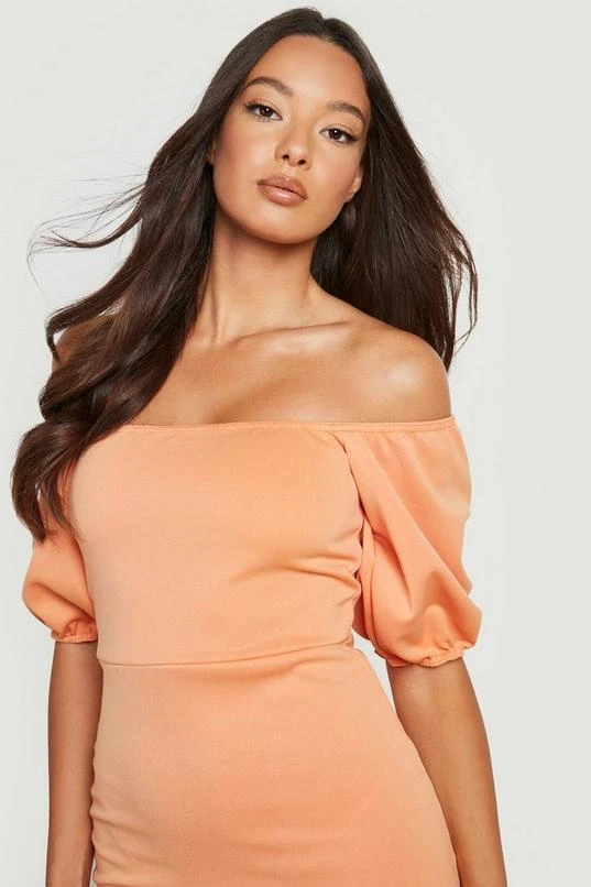 BOOHOO Scuba Puff Sleeve Fishtail Maxi Dress