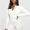 BOOHOO Seamless Zip Up Short Unitard