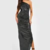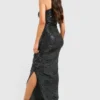BOOHOO Sequin Asymmetric Ruched Maxi Dress
