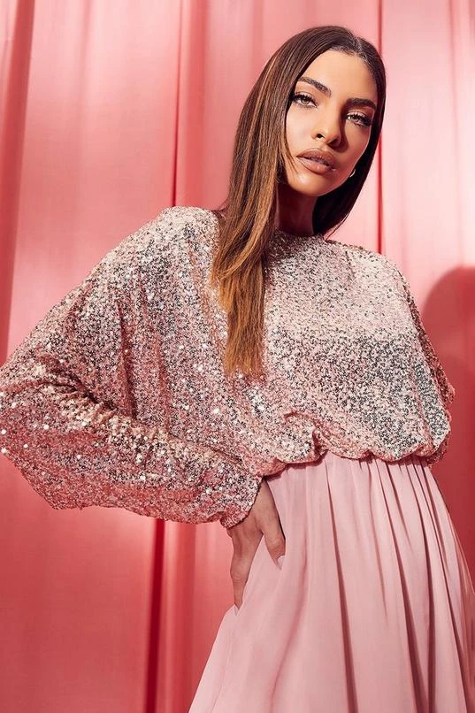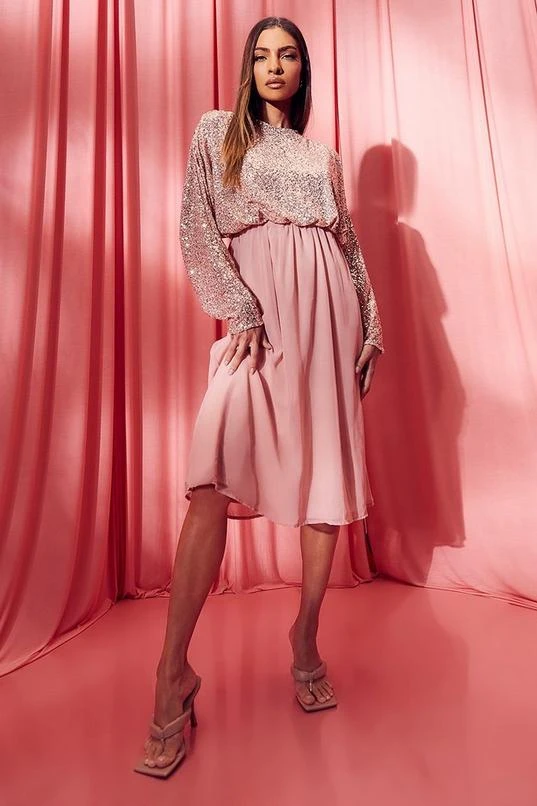 BOOHOO Sequin Batwing Midi Bridesmaid Dress