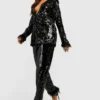BOOHOO Sequin Feather Trim Tailored Blazer