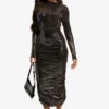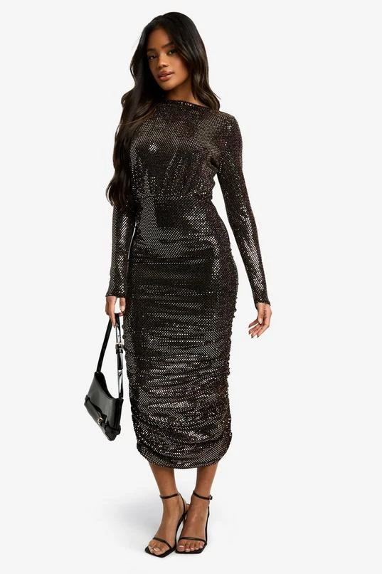 BOOHOO Sequin High Neck Ruched Midi Dress